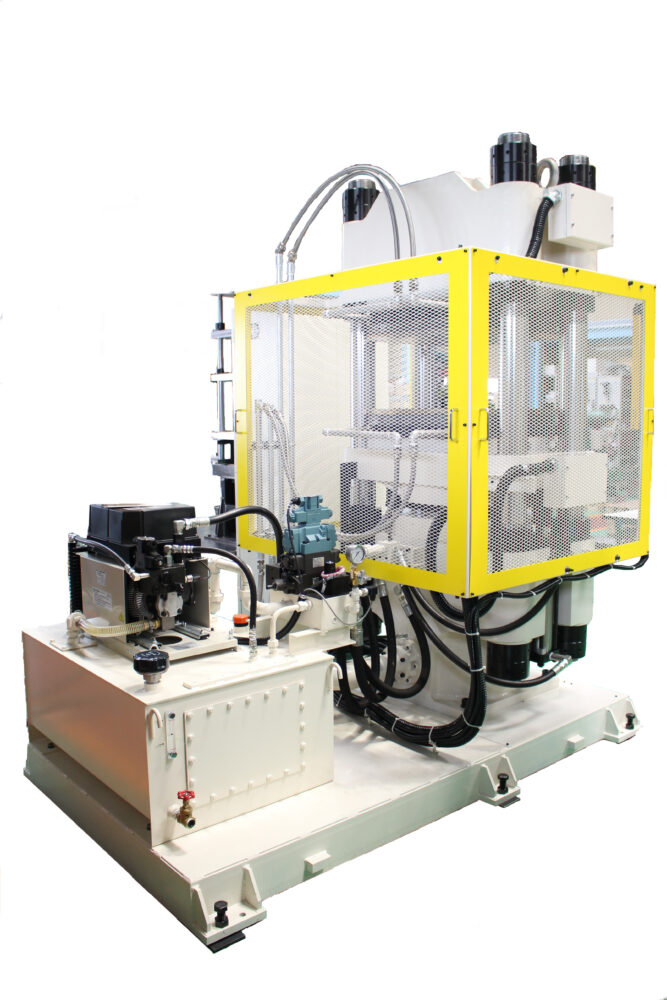 1.インバーター油圧ユニットを使用しています。インバーター油圧ユニットはモータ回転数制御により定容量形ポンプの流量・圧力制御を行うため、省エネになり発熱量の削減も可能です。