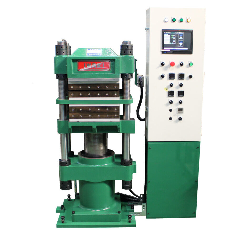 ゴム、樹脂各種製品のサンプルテストを行うための油圧プレス成形機です。